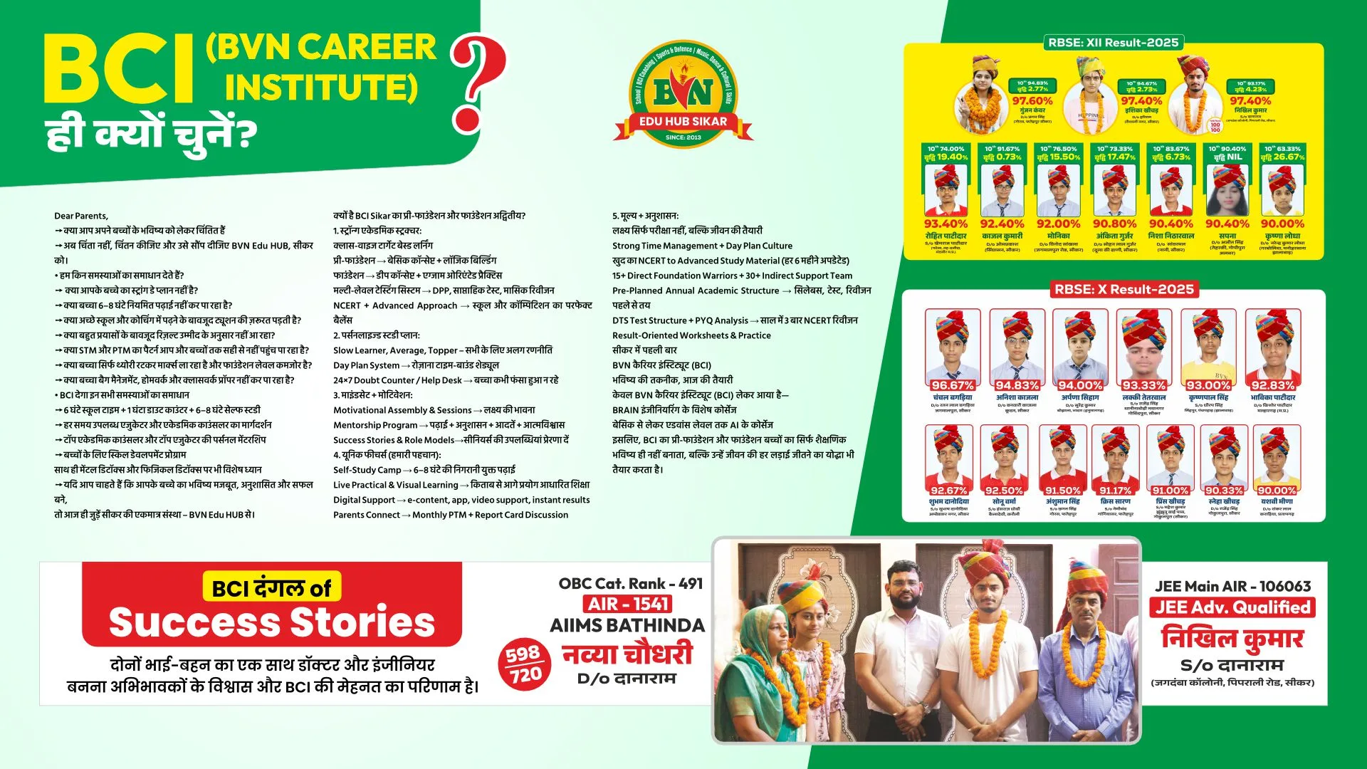 One noteworthy advantage of the BVN Talent is the chance it provides students to study at the prestigious BVN Education Hub in Sikar, known for its comprehensive test preparation programs. Successful students are awarded generous admission scholarships, making the Education Hub's resources and guidance more accessible and affordable.